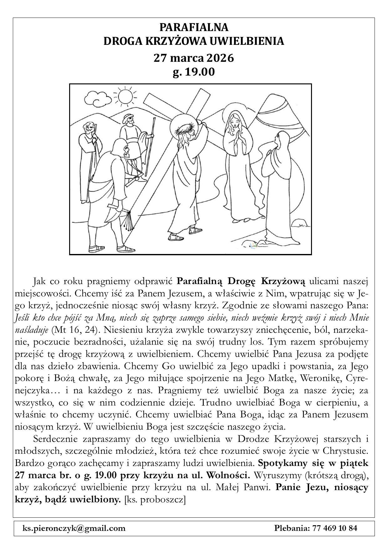 Już 27 marca 2026 roku o godz. 19:00 zapraszamy na Parafialną Drogę Krzyżową Uwielbienia.